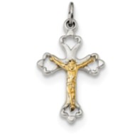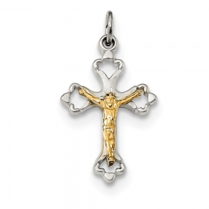 Sterling Silver Gold-plated Satin & D/C Budded Crucifix Pendant