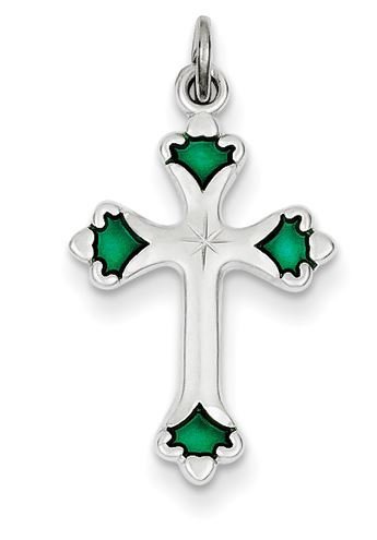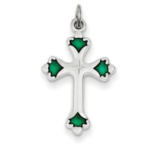 Sterling Silver Green Enameled Budded Cross Charm