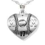 Sterling Silver Heart Shaped Mom Baseball Pendant w/ Number & Chain