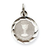 Sterling Silver Holy Communion Round with Diamond Cut Frame Charm
