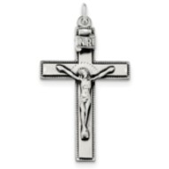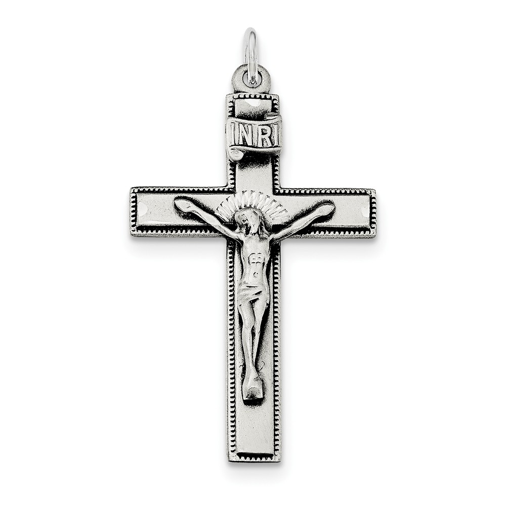 Sterling Silver INRI Crucifix Cross w/ Prayer Pendant