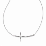 Sterling Silver with Large CZ Sideways Cross with 2 in Ext Necklace