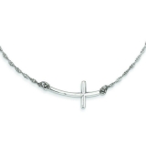 This Sterling Silver Large Sideways Curved Cross Necklace weighs approximately 4.64 grams. Cross is Polished and Measures at Over 3/4 Inch Wide x Under 1/2 Inch Tall 18 Inch Sterling Silver Chain Included.