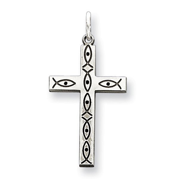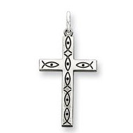 Sterling Silver Laser Designed Jesus Fish Cross Charm