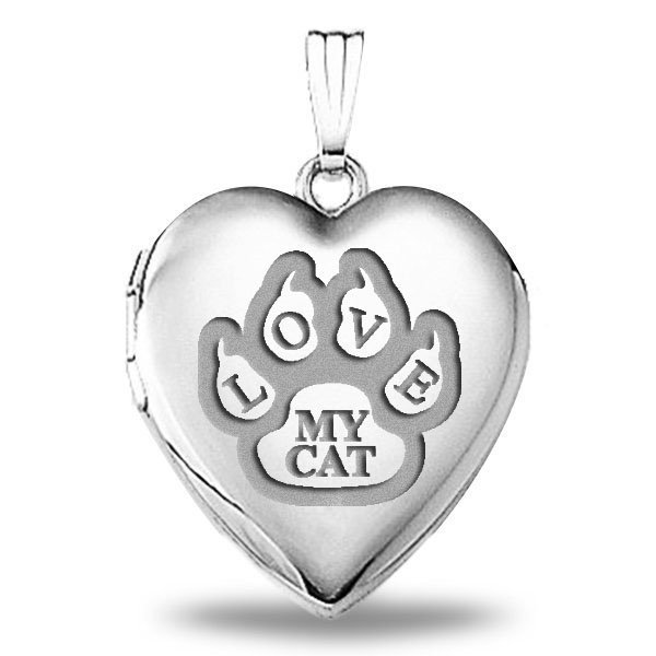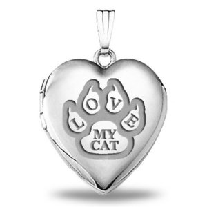 Sterling Silver "Love My Cat Paw Print" Sweetheart Heart Locket