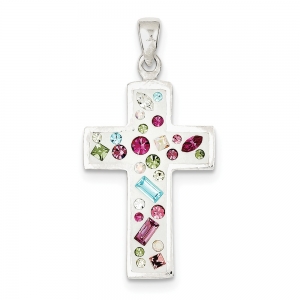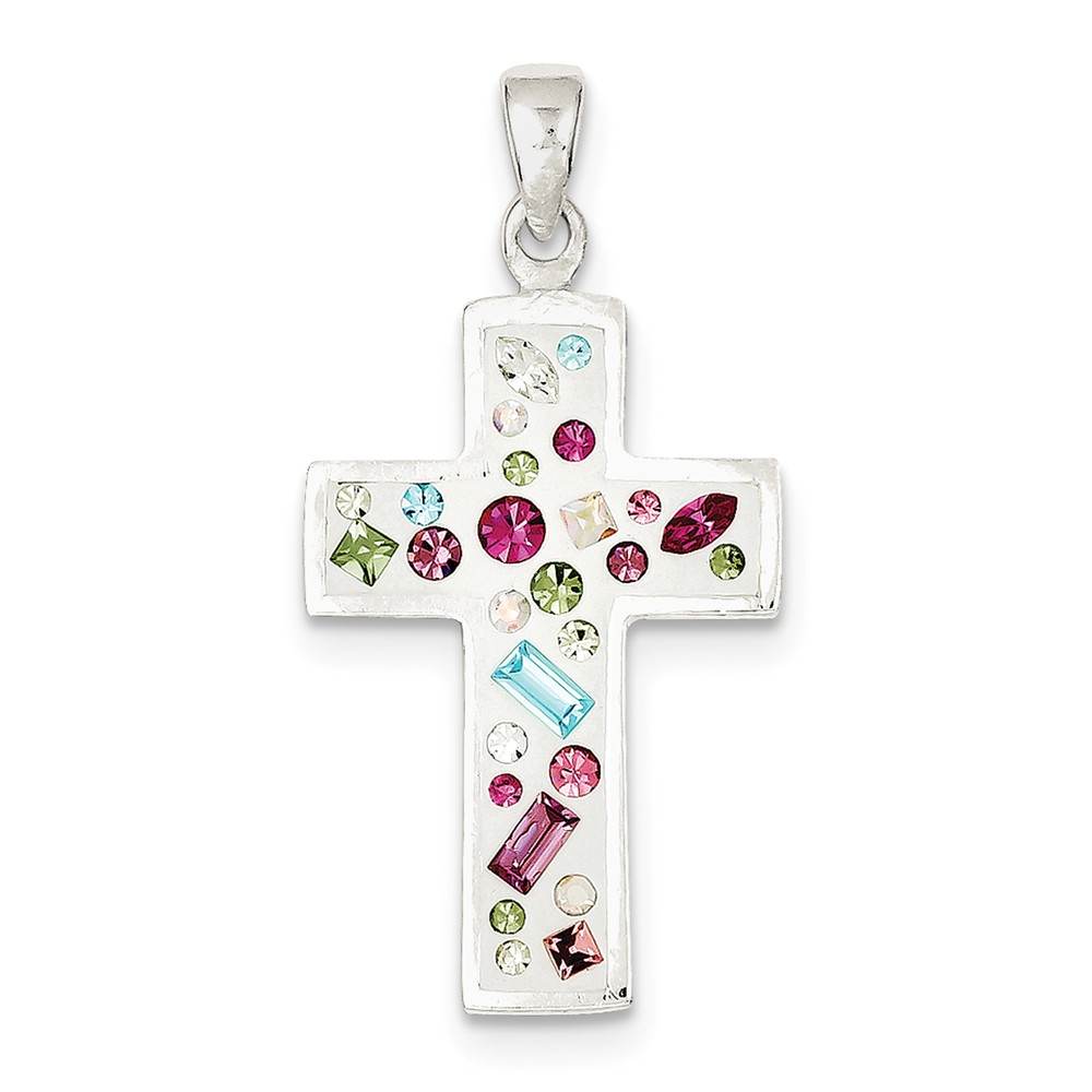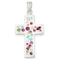 Sterling Silver Multi-Color Stellux Crystal White Cross Pendant