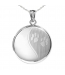 This .925 Solid Sterling Silver Locket has a high polished front side with a genuine diamond in the center. It holds 2 photos and can be engraved on the reverse and inside.