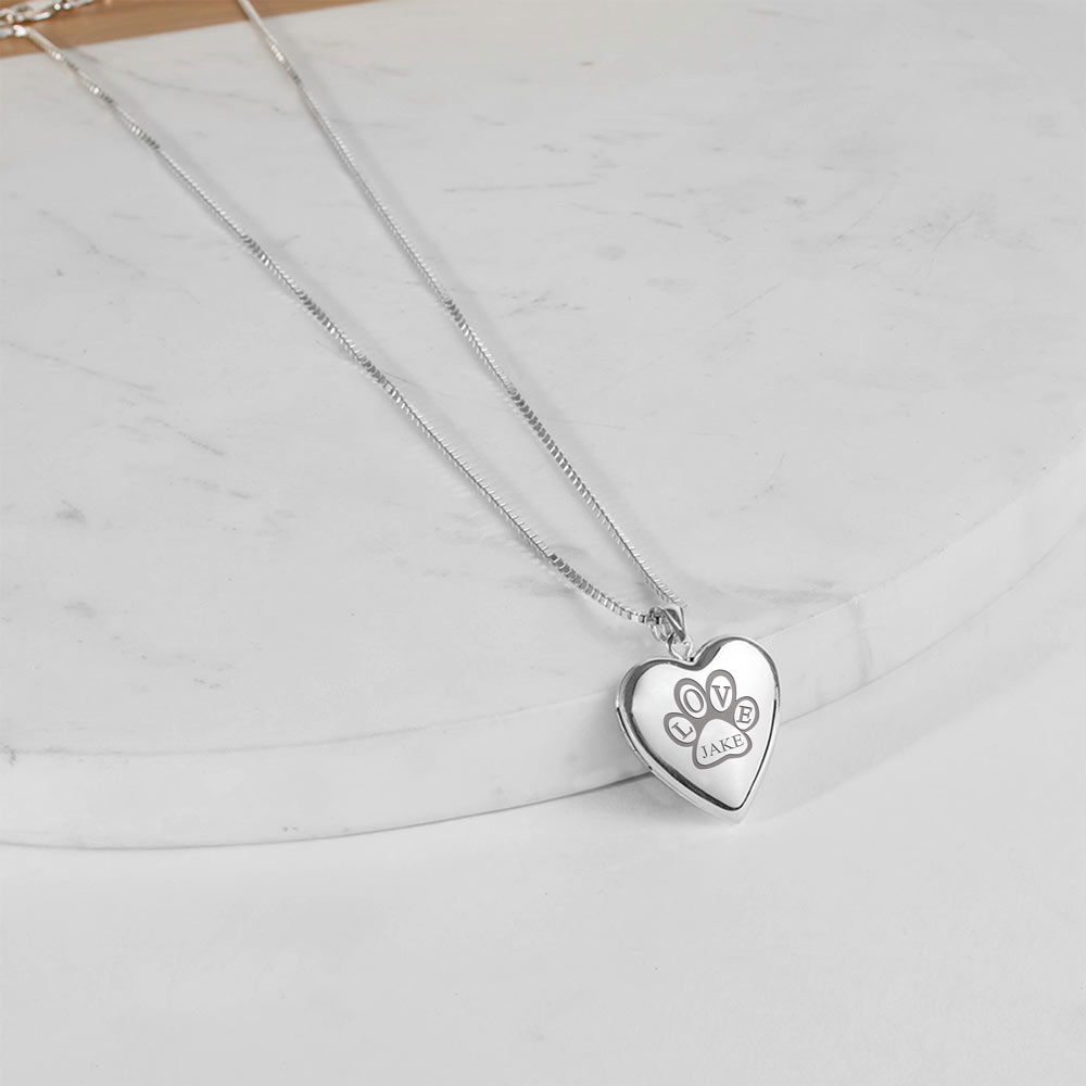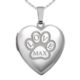 This photo locket is perfect for a Mother's Day gift, Anniversary gift, Birthday gift or any occasion. Solid Sterling Silver Heart Plain Locket can be engraved with a special messages for your loved one to make this locket an even more beautiful gift. Personalize this paw print locket with the name of your pet. CHAIN SOLD SEPARATELY.