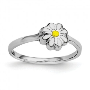 Sterling Silver Plated Children's White and Yellow Enamel Daisy Ring