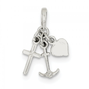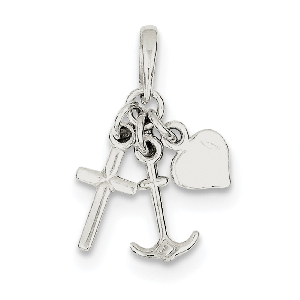 Sterling Silver Polished Anchor Heart and Cross Pendant