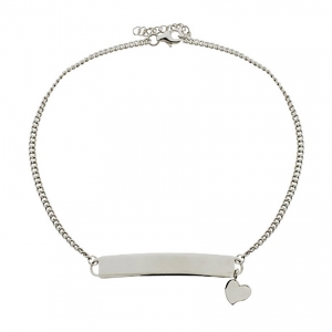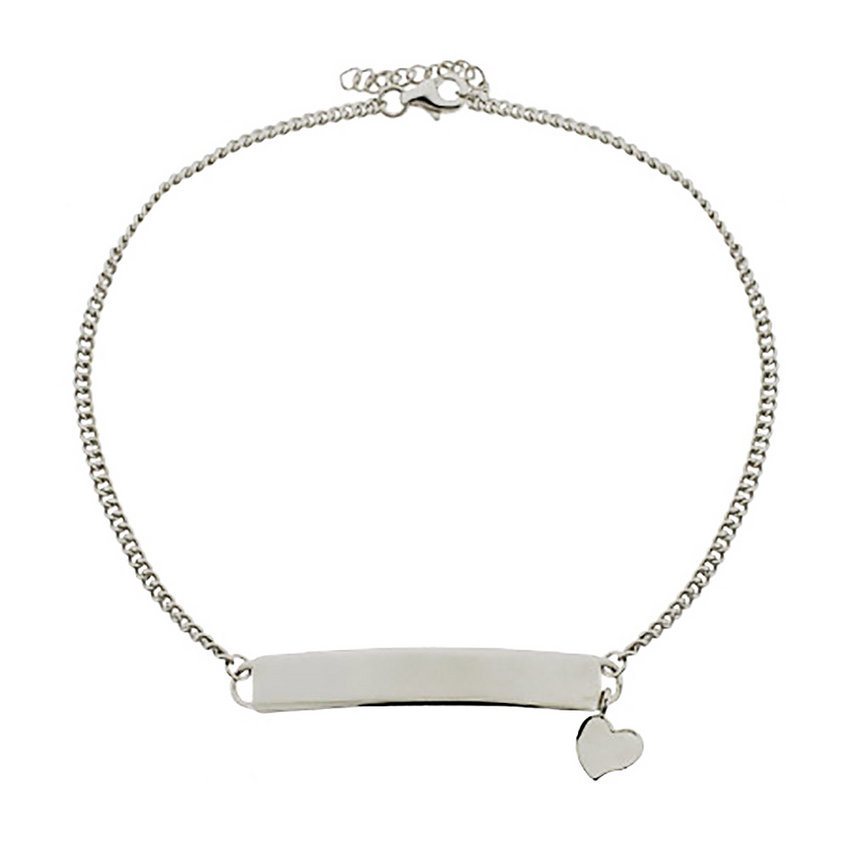 Sterling Silver Polished Anklet with Heart Charm & Engravable Plate