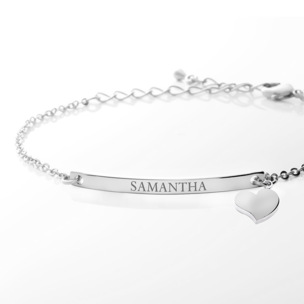 Sterling Silver Polished Anklet with Heart Charm & Engravable Plate