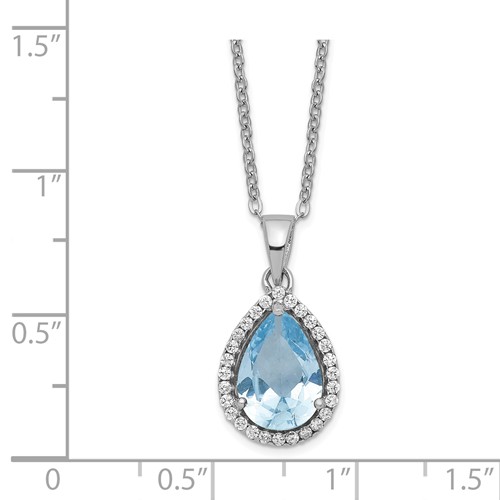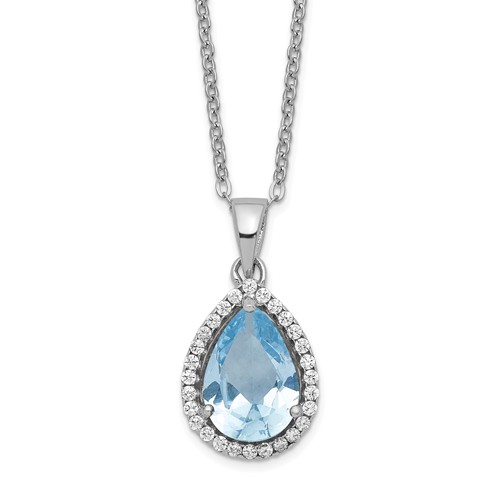 Sterling Silver Polished Aquamarine and CZ Necklace with Chain