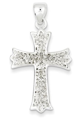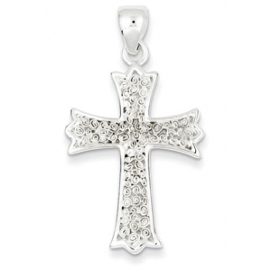 Sterling Silver Polished Filigree Cross Pendant