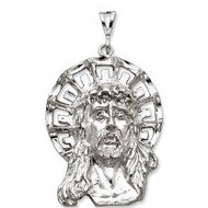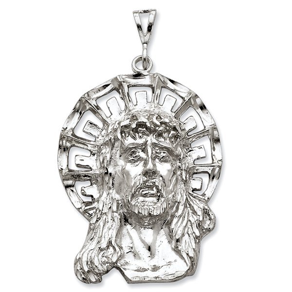 Sterling Silver Polished Jesus Head with Diamond Cut Halo