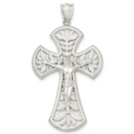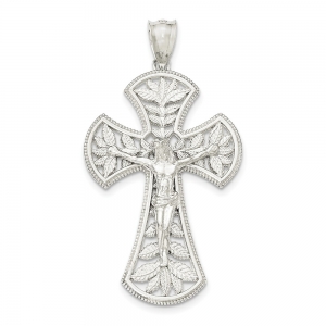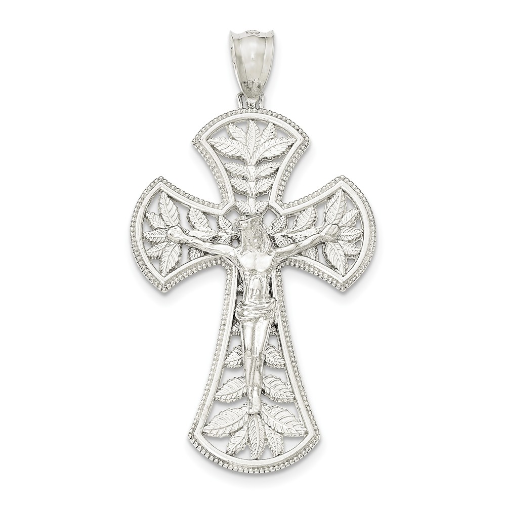 Sterling Silver Polished Leaf Large INRI Crucifix Pendant