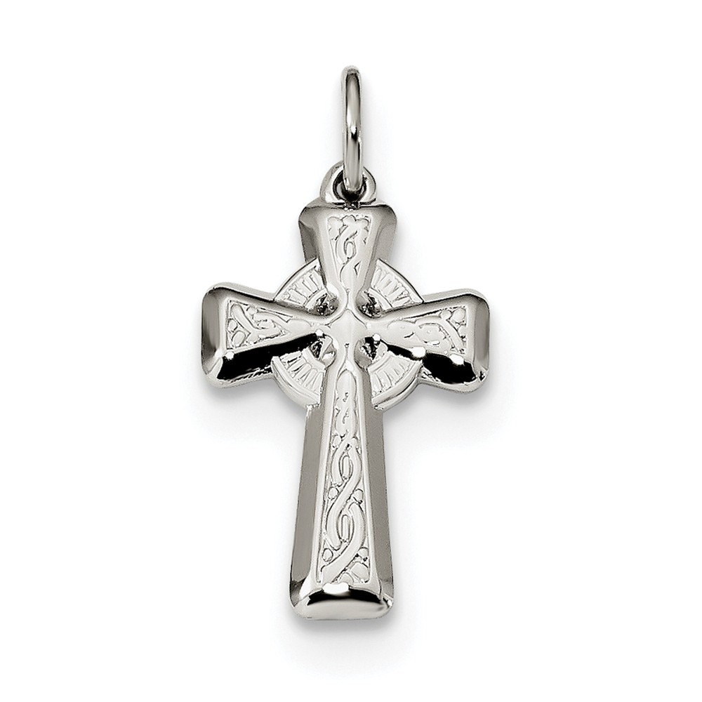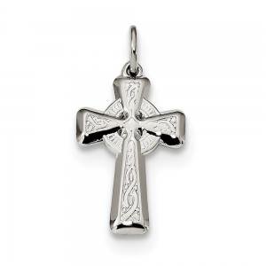 Sterling Silver Polished & Textured Celtic Cross Pendant