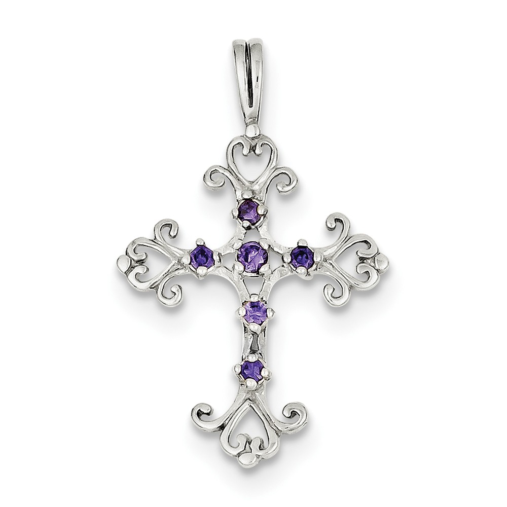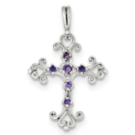 Sterling Silver Purple CZ Cross Charm