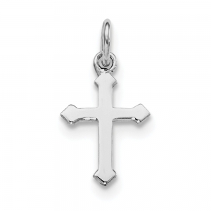 Sterling Silver RH Plated Child\'s Polished Cross Pendant