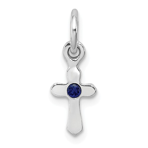 Sterling Silver RH Plated Child\'s Preciosca Crystal Sept Cross Pendant