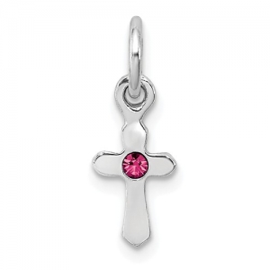 Sterling Silver RH Plated Child\'s Preciosca Crystal Oct Cross Pendant