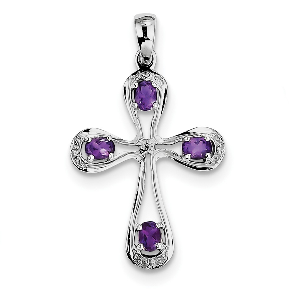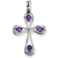 Sterling Silver Rhodium Amethyst & Diamond Cross Pendant