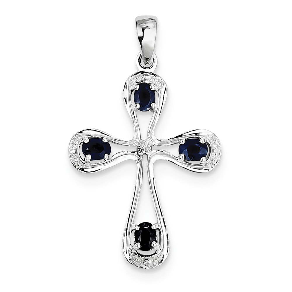Sterling Silver Rhodium Dark Sapphire & Diamond Cross Pendant