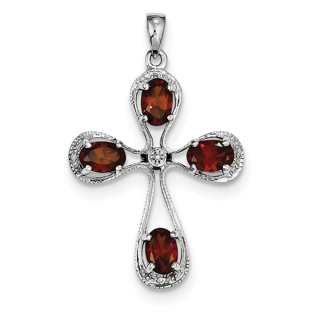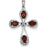 Sterling Silver Rhodium Garnet & Diamond Cross Pendant