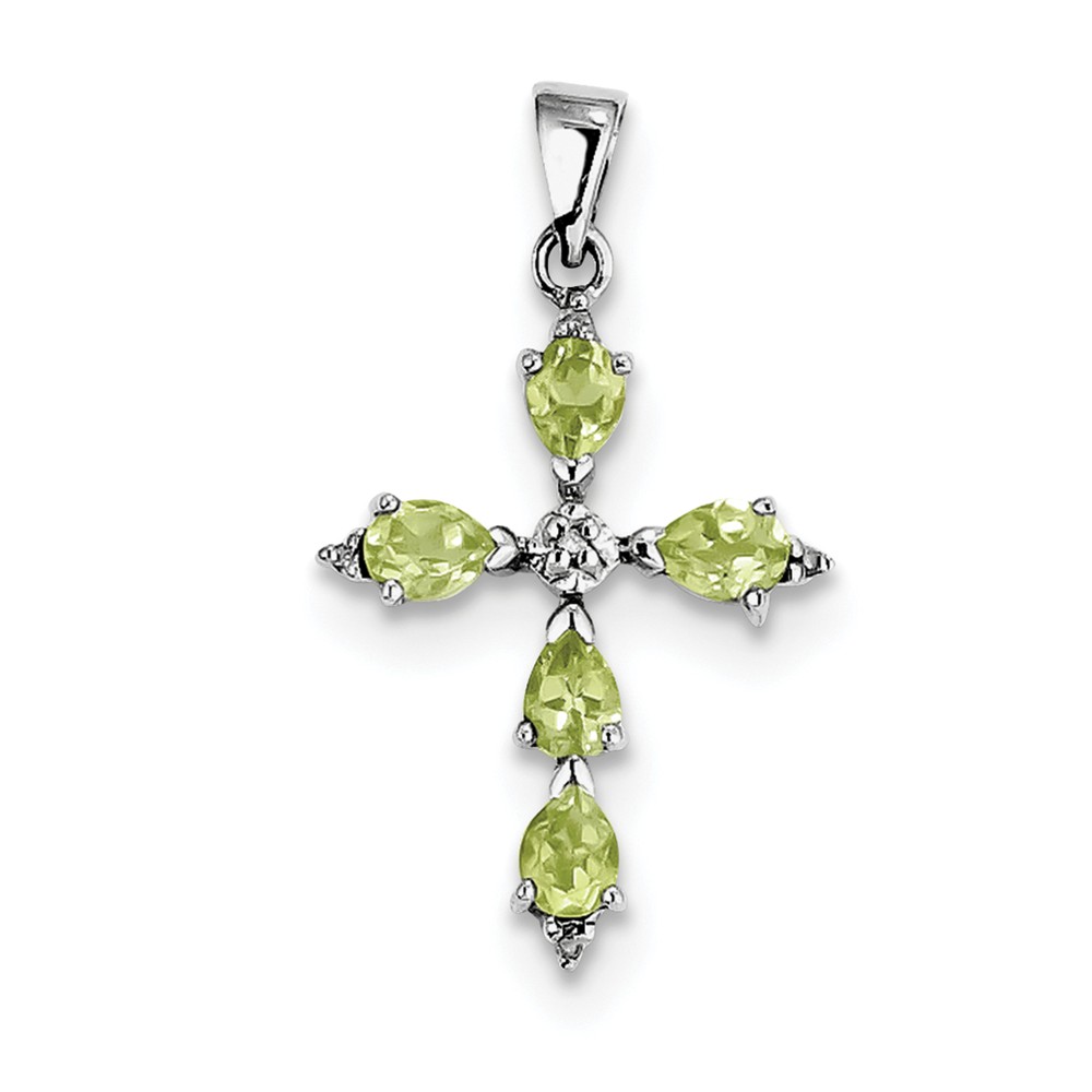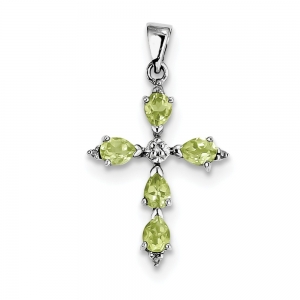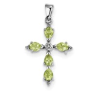 Sterling Silver Rhodium Pear Peridot Cross Pendant