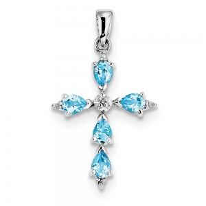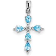 Sterling Silver Rhodium Pear Swiss Blue Topaz Cross Pendant