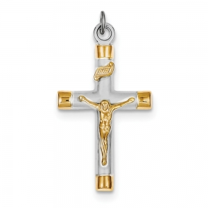 Sterling Silver Rhodium-plated & 18k Gold-plated Crucifix Pendant