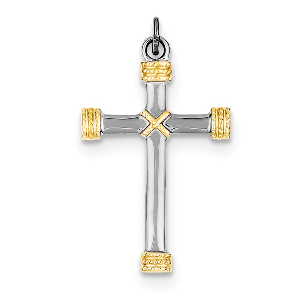 Sterling Silver Rhodium-plated & 18k Gold-plated Rope Cross Pendant