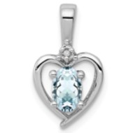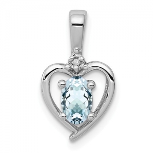 Sterling Silver Rhodium-plated Aquamarine and Diam. Pendant