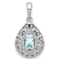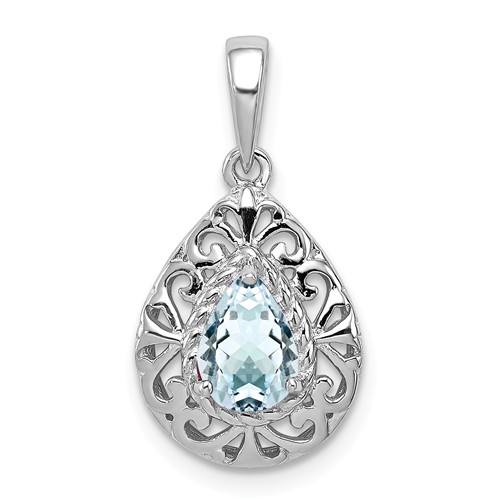 Sterling Silver Rhodium Plated Aquamarine Teardrop Pendant