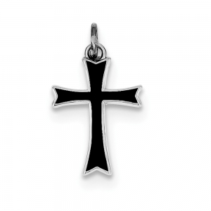Sterling Silver Rhodium-plated Black Enameled Cross Charm
