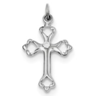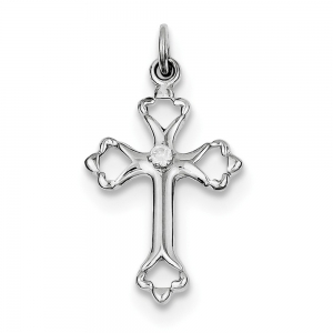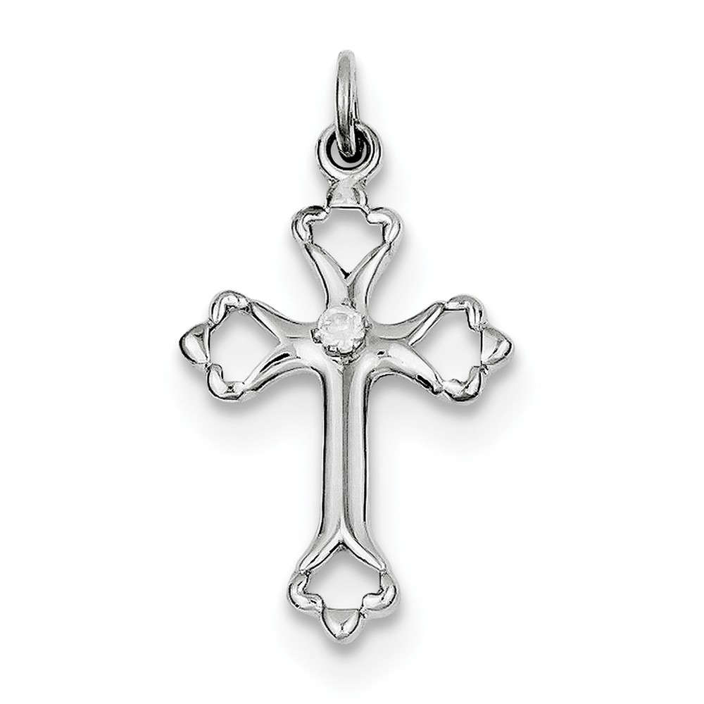 Sterling Silver Rhodium-plated Budded Cross w/CZ Charm