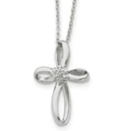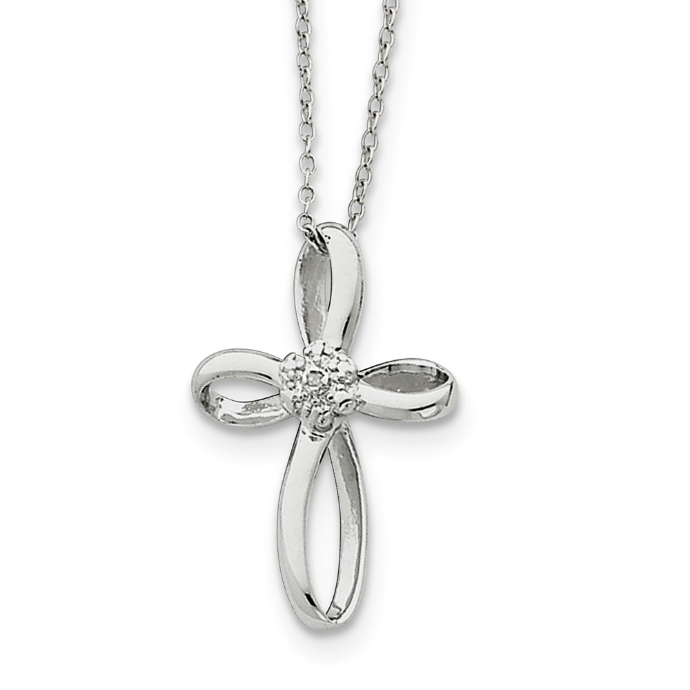 Sterling Silver Rhodium-plated Cross Diamond Necklace