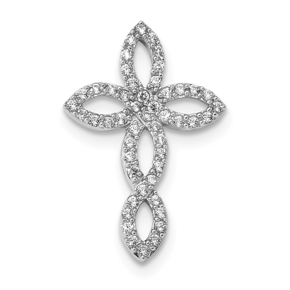 Sterling Silver Rhodium-plated CZ Cross Pendant