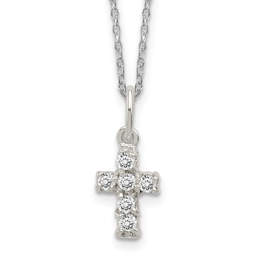 Sterling Silver Rhodium Plated CZ Cross Pendant