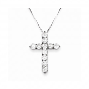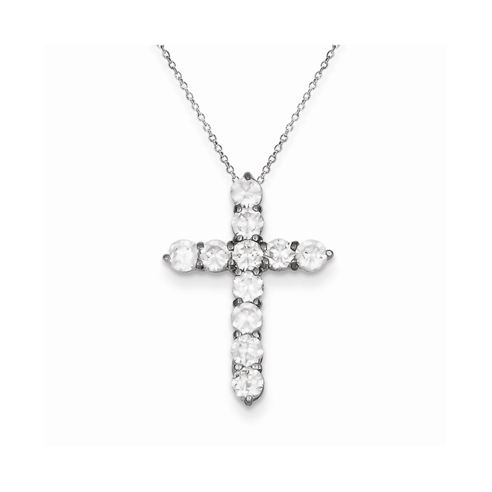 Sterling Silver Rhodium Plated CZ Cross Pendant