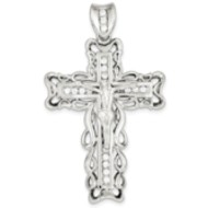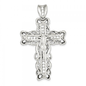 Sterling Silver Rhodium-plated CZ Crucifix Pendant