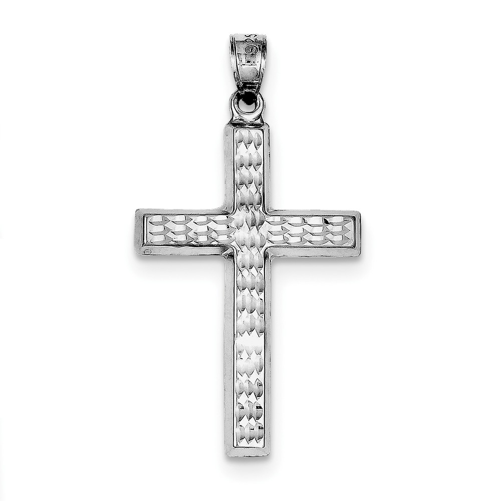 Sterling Silver Rhodium-plated Diamond Cut Cross Pendant