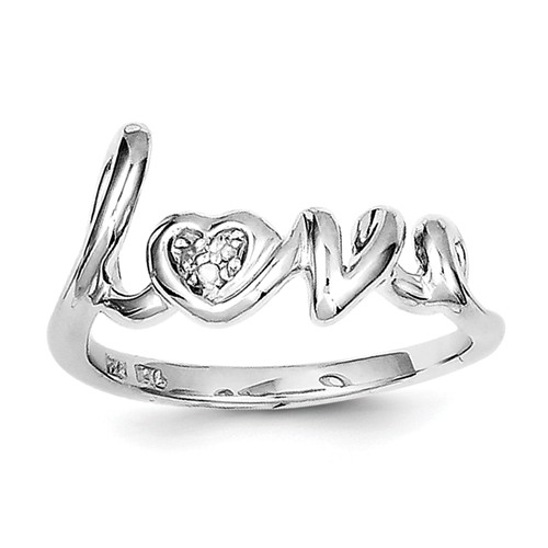 Sterling Silver Rhodium Plated Diamond Love Ring
