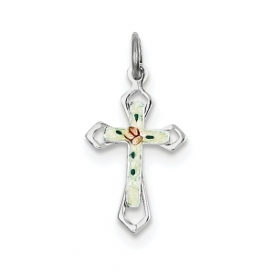 Sterling Silver Rhodium-plated with Enamel Cross Pendant