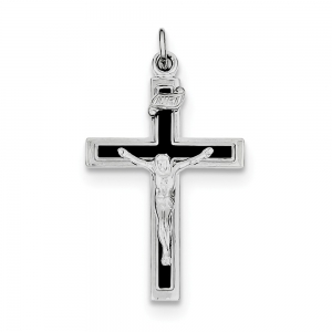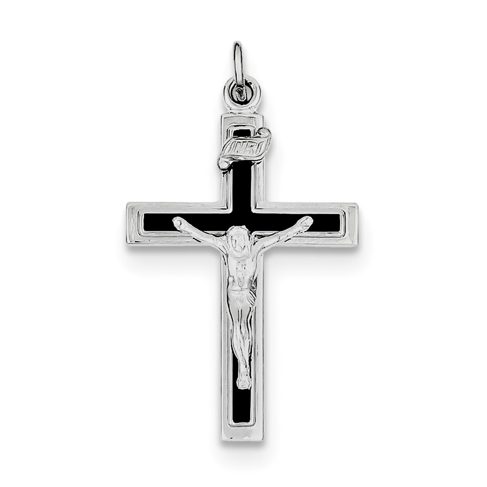 Sterling Silver Rhodium-plated Enameled Crucifix Pendant