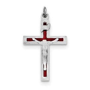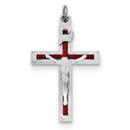 Sterling Silver Rhodium-plated Enameled Crucifix Pendant