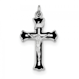 Sterling Silver Rhodium-plated Enameled INRI Crucifix Charm