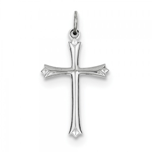 Sterling Silver Rhodium-plated Fleur De Lis Cross Charm