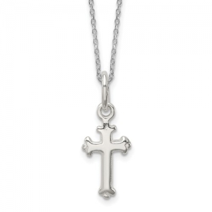 Sterling Silver Rhodium Plated Fleur De Lis Cross Pendant