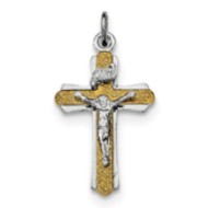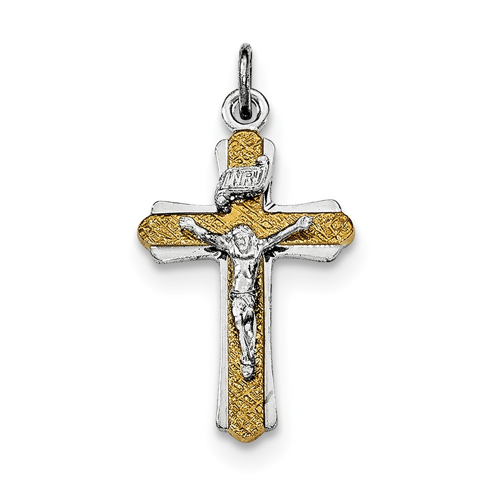 Sterling Silver Rhodium-plated & Gold-tone INRI Crucifix Cross Pendant